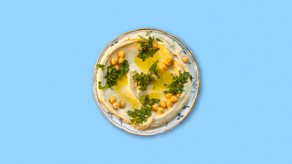 Halloumi , gegrilltes Gemüse, Hummus, Salat.