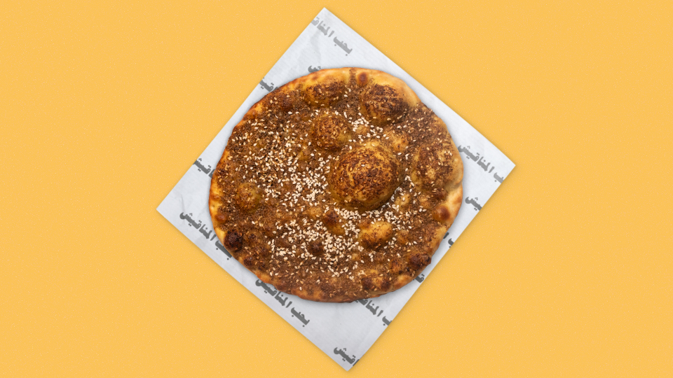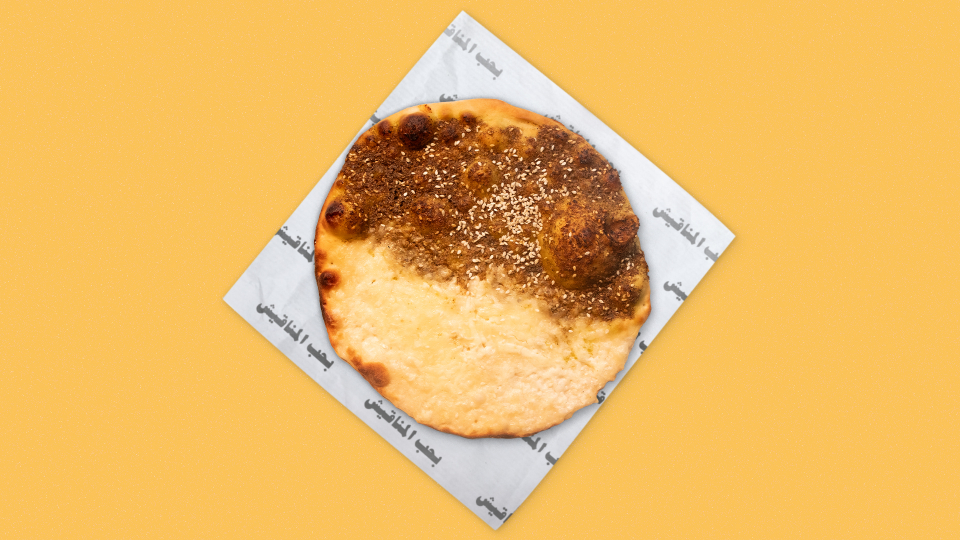 Manakish ähnelt einer dünnen Pizza und wird oft mit frischem Gemüse, würzigem Hackfleisch, aromatischem Kase oder traditionellem Za’atar belegt. Es ist beliebt zum Frühstuck mit einer Tasse Tee oder als Snack am Abend